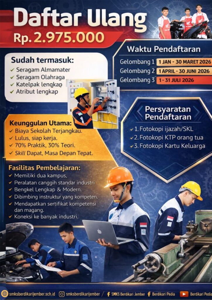 2 replies on “Sistem Penerimaan Murid Baru Tahun 2026 – 2027 SMK BERDIKARI JEMBER”